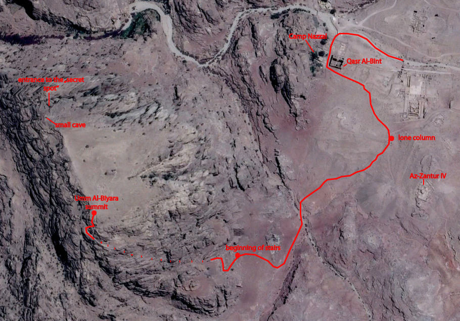 The biggest challenge when hiking Umm Al-Biyara, however, is simply knowing where to begin. Listed here are step-by-step instructions (along with the path marked on Google Earth) for reaching the well-hidden staircase that takes hikers from the mountain’s base to the summit.