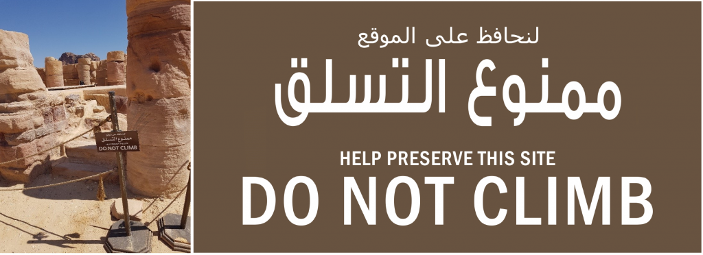 A review of the signage is ongoing. Initial observations suggest the signs are already serving an important role in informing visitors and tour guides. It is hoped that a future evaluation by Jordanian university students will be undertaken to ask visitors about their experiences. This in turn may be used to inform future positioning, design, and effectiveness of interpretative signage.
