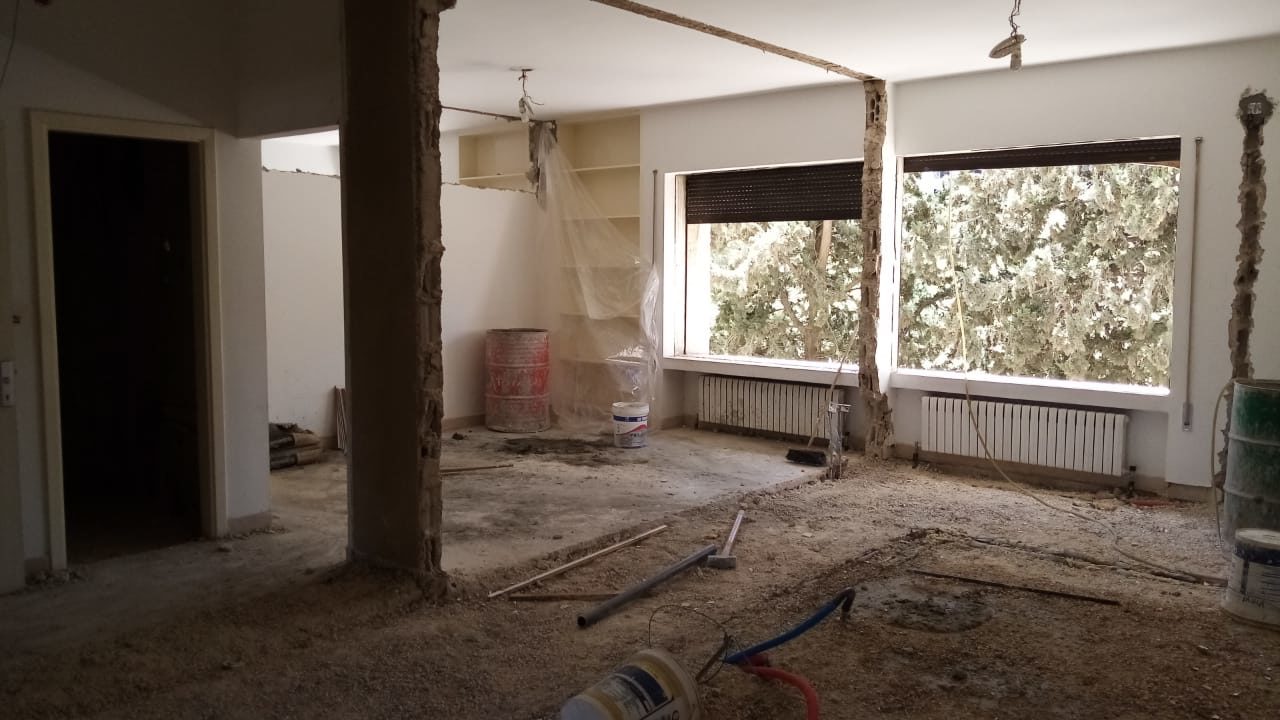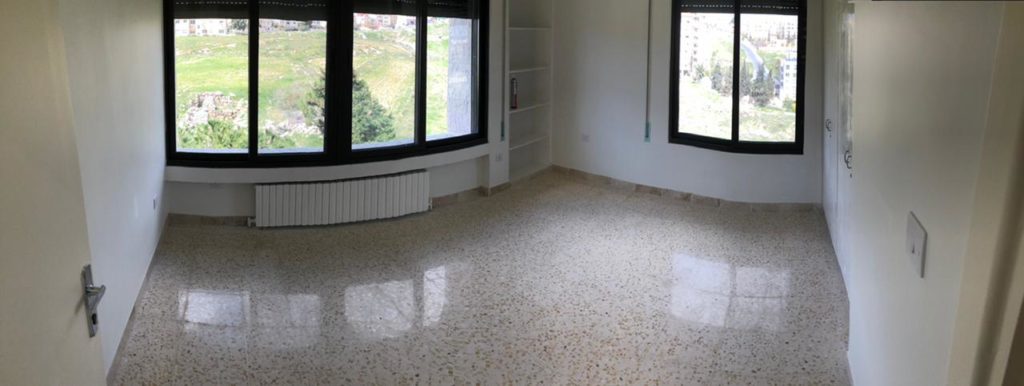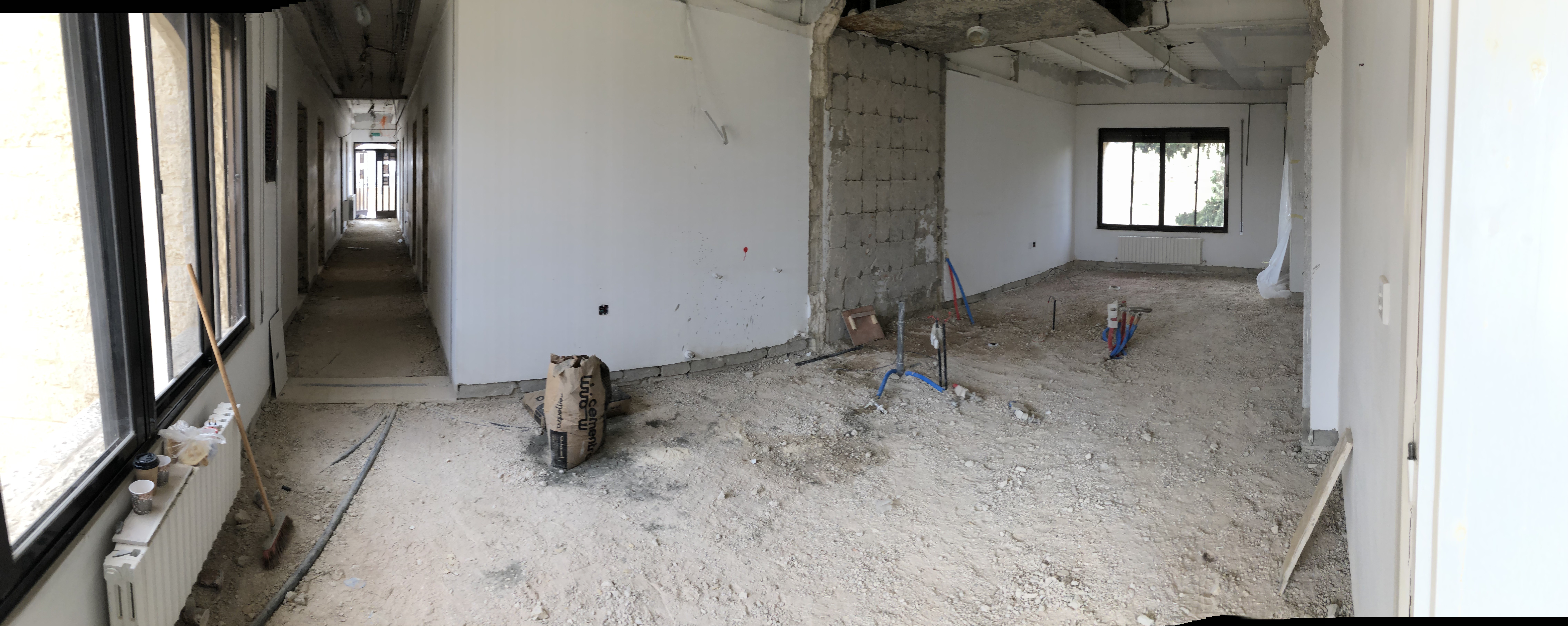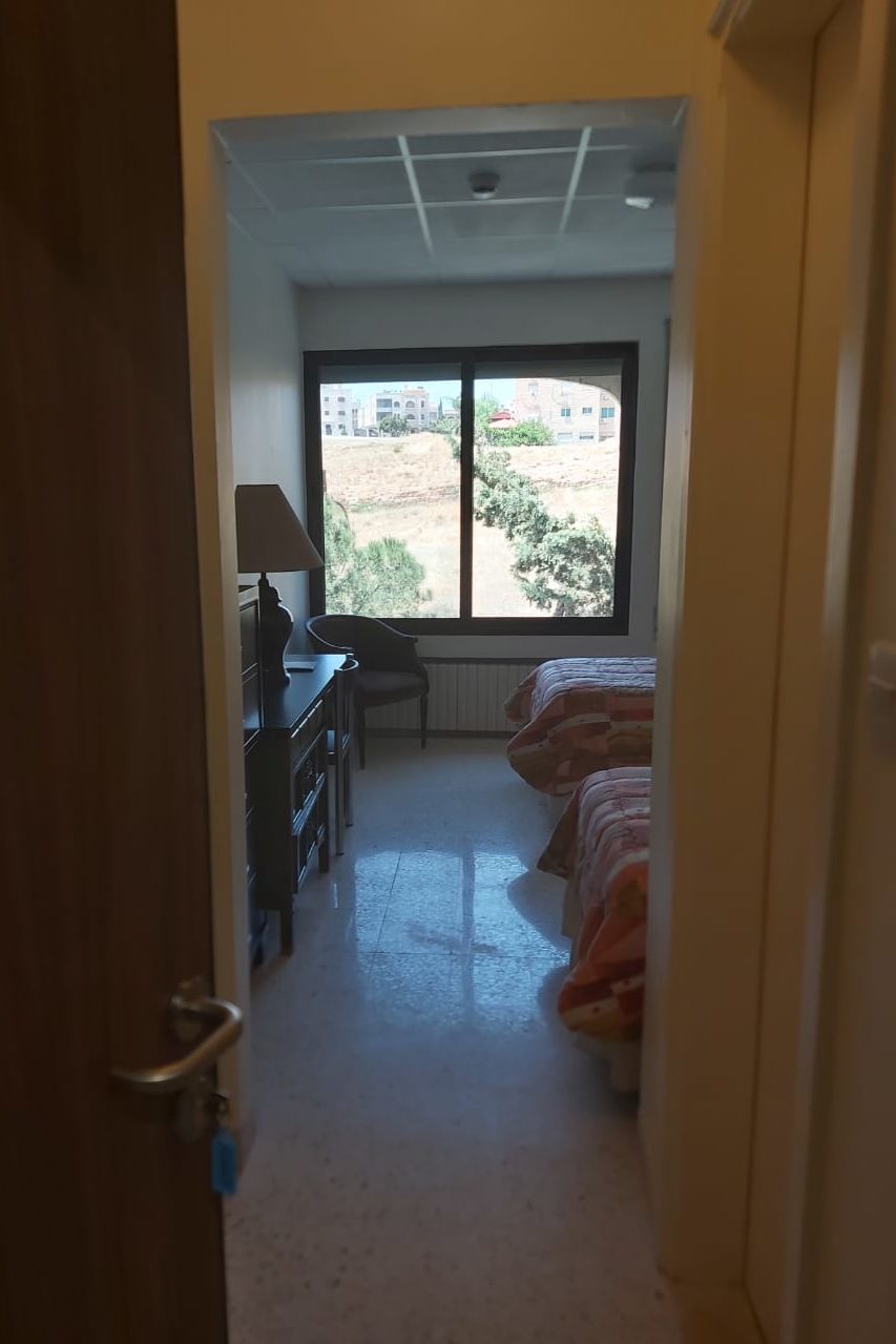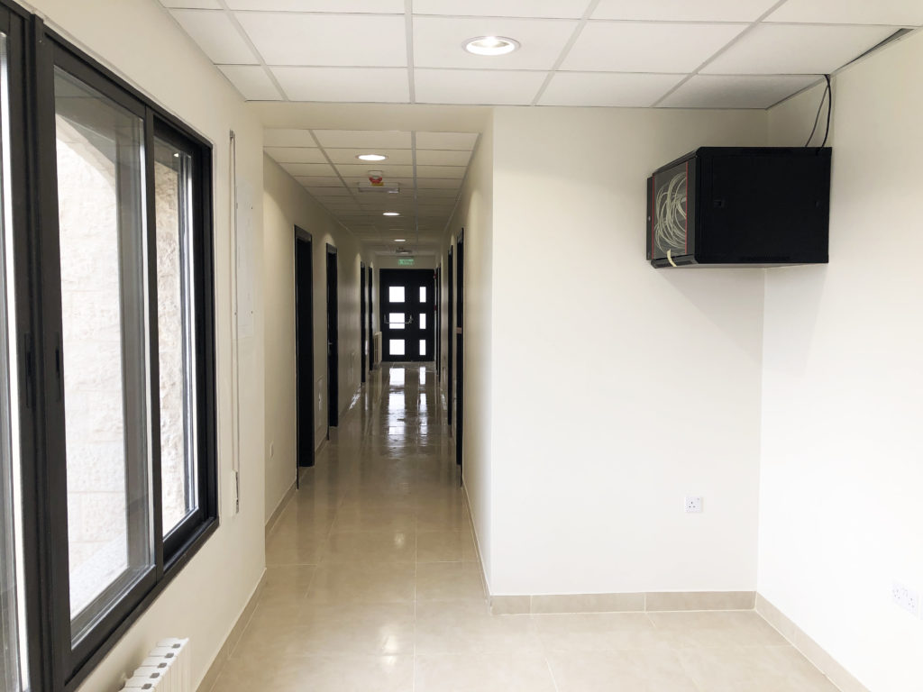 Renovated hostel rooms on the fifth floor (April 7, 2021). The 5th floor of the hostel, looking south (April 7, 2021).Fifth floor of the hostel, looking north (April 7, 2021).Completed sixth-floor office space (April 1, 2021). A completed sixth-floor apartment bathroom (April 1, 2021).Hallway of the nearly-complete sixth floor, which will soon serve as office space for ACOR staff during stage two of the renovation (March 28, 2021). The lower library, nearly free of books in preparation for the second stage of the renovation, which will address the bottom three floors of the building, including library spaces (March 28, 2021). Facility Manager Abed Adawi in a fourth floor apartment, still in progress (March 28, 2021).Newly-installed windows in fourth floor office (facing west) (March 11, 2021). Fourth floor apartment with new windows installed, looking east toward the University of Jordan campus (March 11, 2021).