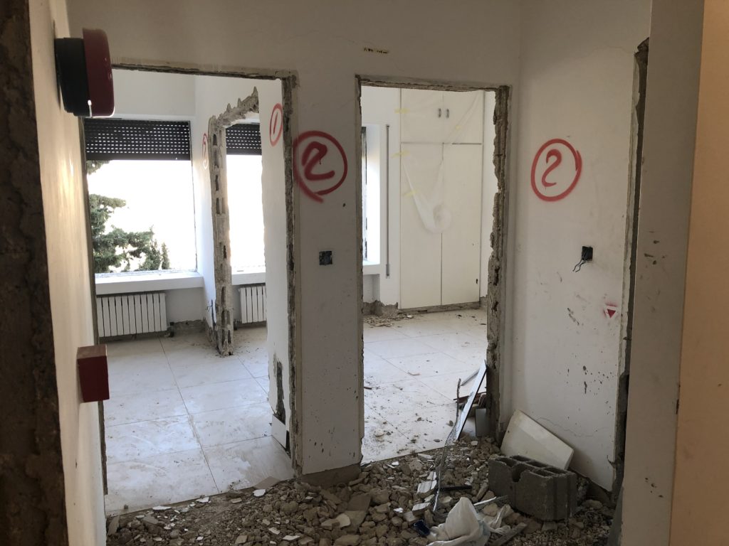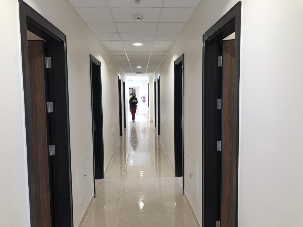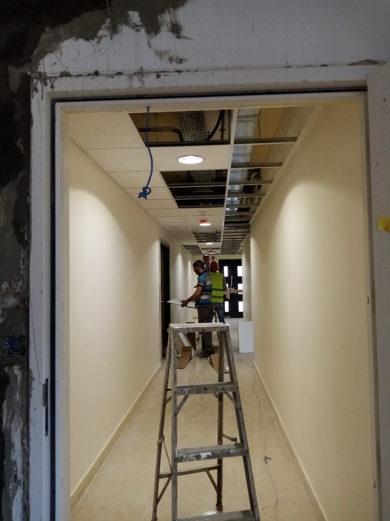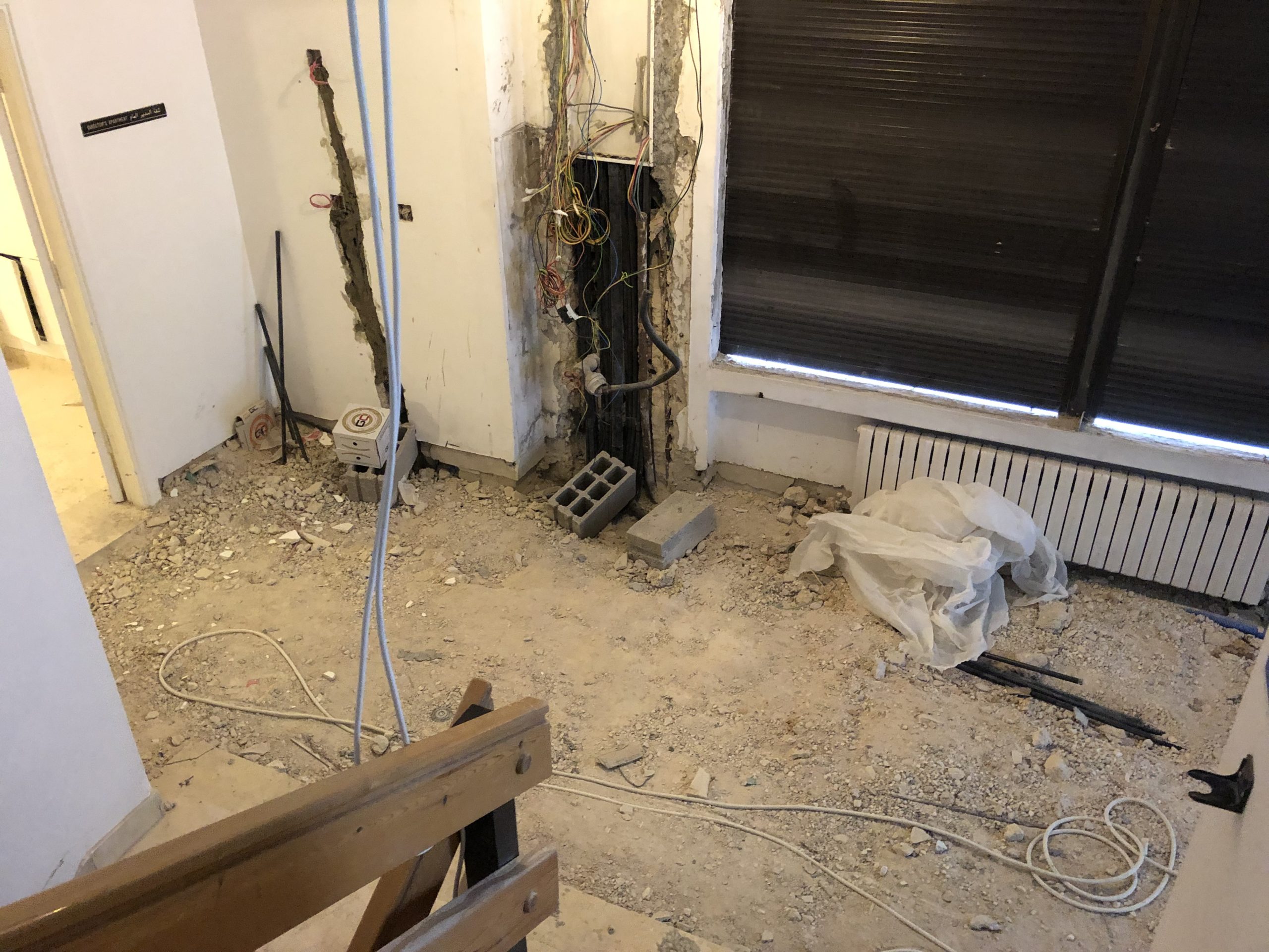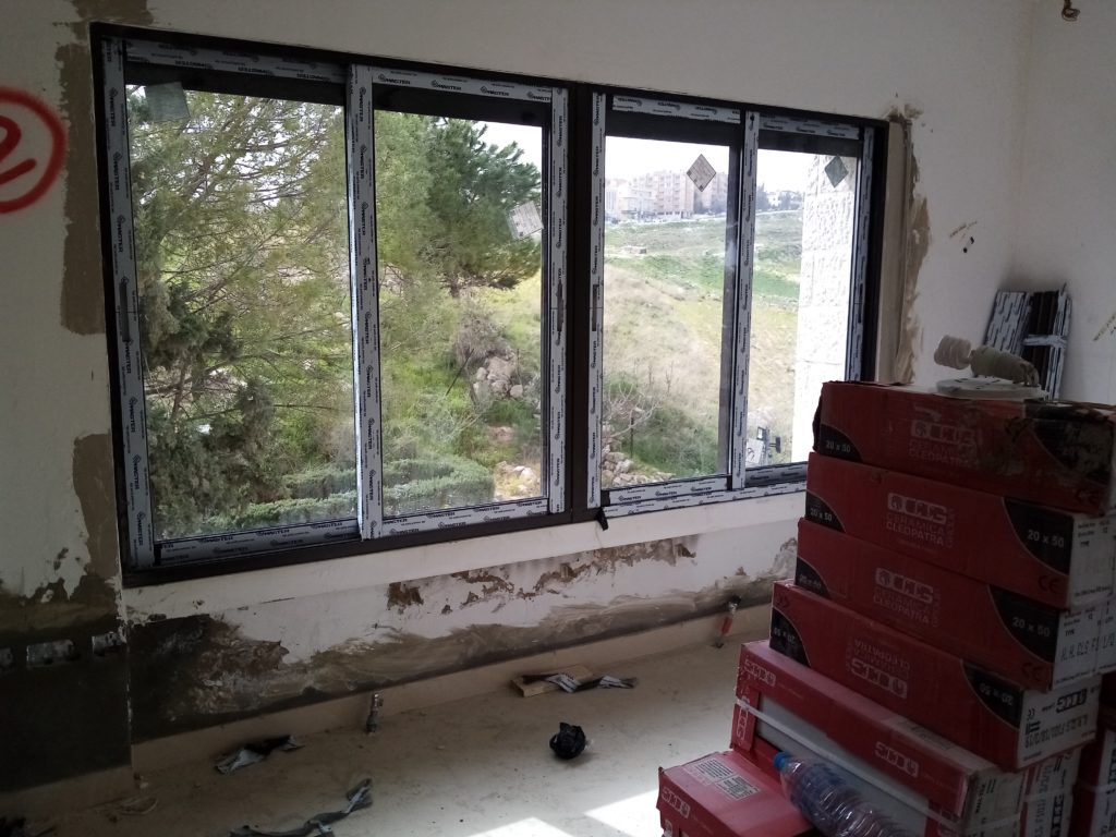 Renovated hostel rooms on the fifth floor (April 7, 2021). The 5th floor of the hostel, looking south (April 7, 2021).Fifth floor of the hostel, looking north (April 7, 2021).Completed sixth-floor office space (April 1, 2021). A completed sixth-floor apartment bathroom (April 1, 2021).Hallway of the nearly-complete sixth floor, which will soon serve as office space for ACOR staff during stage two of the renovation (March 28, 2021). The lower library, nearly free of books in preparation for the second stage of the renovation, which will address the bottom three floors of the building, including library spaces (March 28, 2021). Facility Manager Abed Adawi in a fourth floor apartment, still in progress (March 28, 2021).Newly-installed windows in fourth floor office (facing west) (March 11, 2021). Fourth floor apartment with new windows installed, looking east toward the University of Jordan campus (March 11, 2021).
