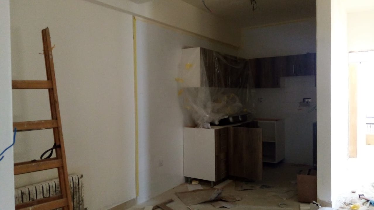 Fourth floor apartment space with new cabinets (April 22, 2021).