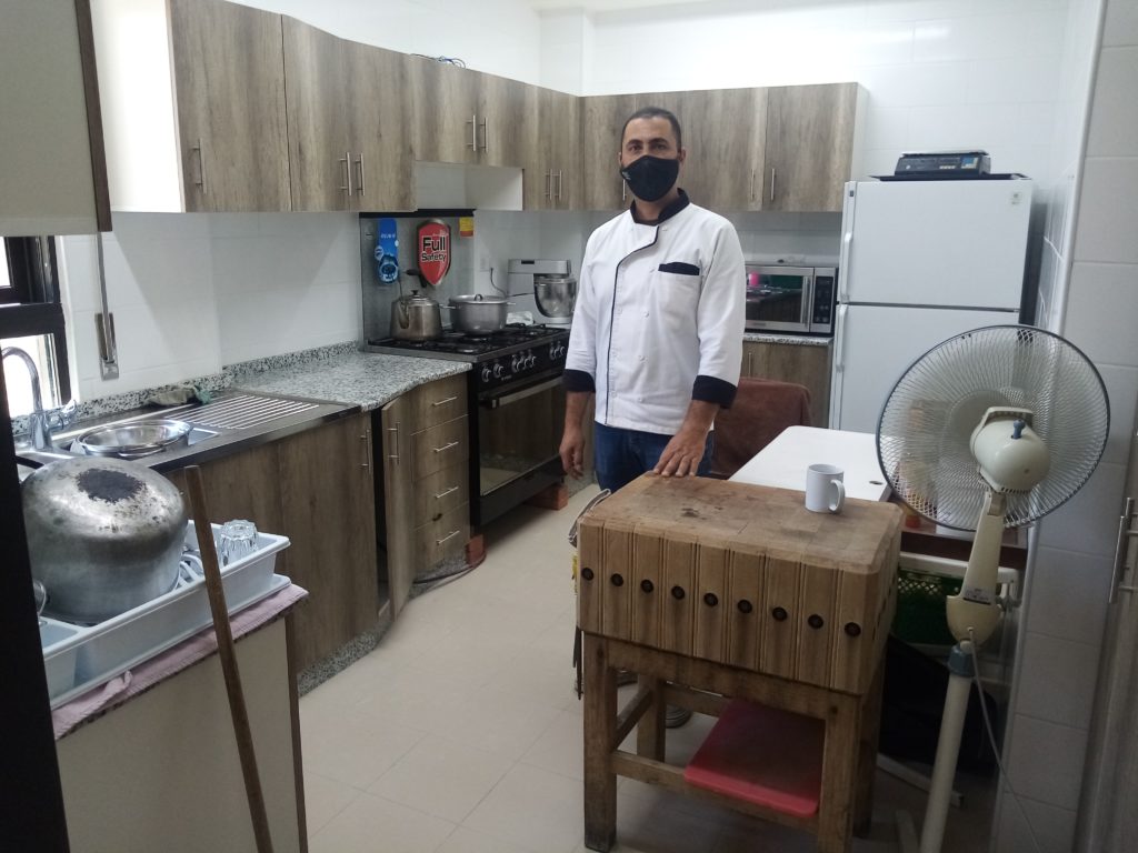 Head Chef Ghassan Adawi in the now operative fourth-floor kitchen space while ACOR’s main kitchen on the third floor undergoes renovation (July 13, 2021).