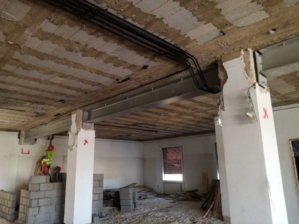 Renovations ongoing on the first floor, new structural beam visible at top right (July 13, 2021).