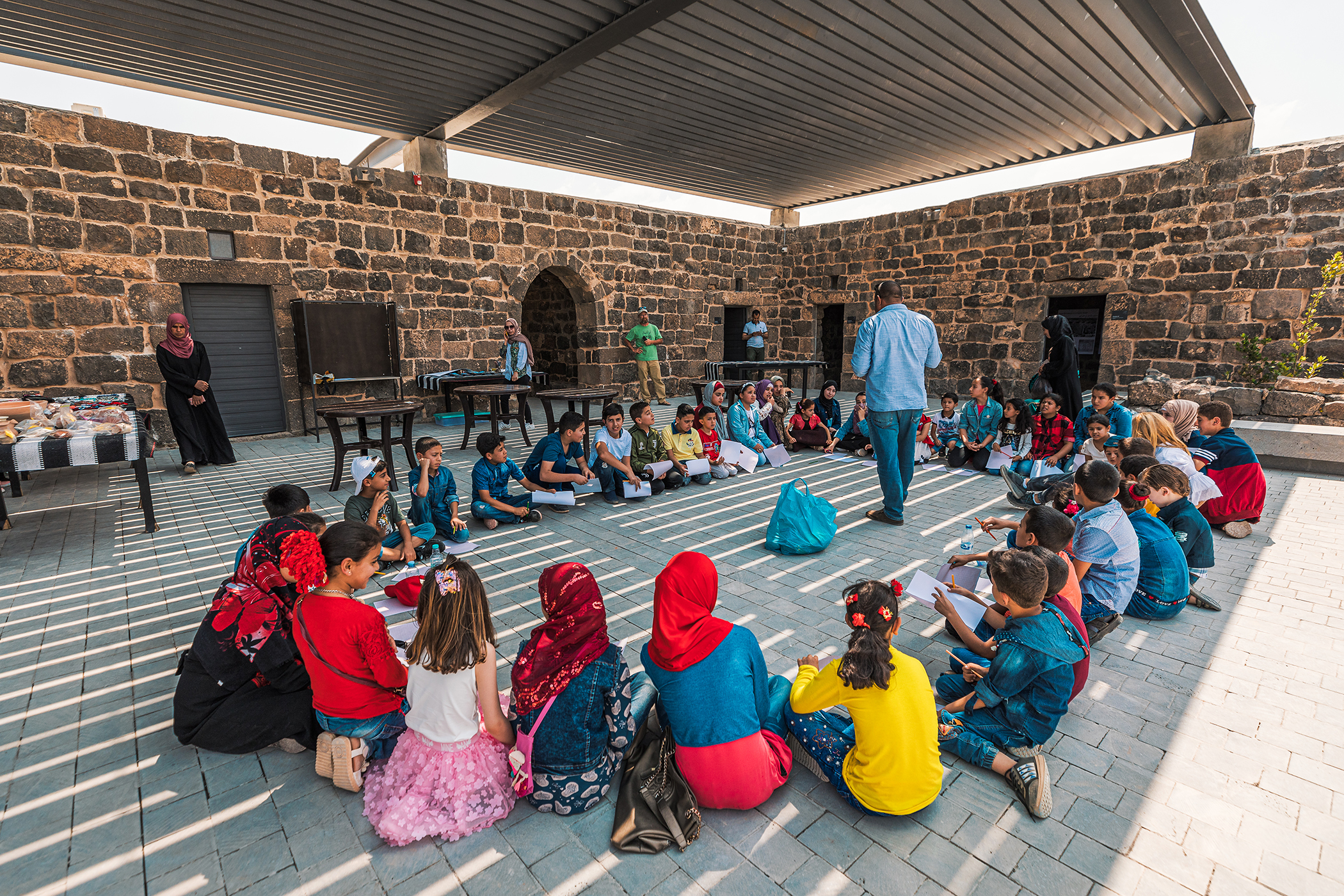 Archaeologist and program coordinator Muaffaq Hazza of the Umm el-Jimal Archaeology Project (UJAP) giving a ceramics lesson at the Interpretation and Hospitality Center completed in late 2019. His master’s thesis on the Nabataean to Umayyad archeological history of Umm el-Jimal is one of several recent research publications on the site at Jordanian universities. The UJAP represents increasing engagement of local communities with the restoration and presentation processes of archaeological sites, in order to achieve both their own economic sustainability and preservation of their cultural heritage. (Photo by Ali Barqawi.) Find out more here: https://publications.acorjordan.org/articles/umm-el-jimal-archaeological-project-2018-2019/