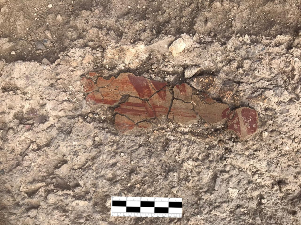 Traces of colored stucco floors dating back to the Pre-Pottery Neolithic B period (approximately 8800–6500 BC), uncovered at ‘Ayn Ghazal during emergency excavations in 2019. ‘Ayn Ghazal is considered one of the largest sites from the Neolithic period in the ancient Near East and is located on the main road connecting Amman and Zarqa. It was discovered by chance in 1974 during work to open the highway. The initial archaeological excavations in the 1980s and 1990s revealed the remains of a Neolithic agricultural village that dates back to the second half of the 9th millennium BC and remained populated until the middle of the 6th millennium BC. In August 2019, the Ministry of Public Works and Housing (MoPWH) informed the Department of Antiquities (DoA) of implementation of the Bus Rapid Transit Route (BRT) Project in cooperation with the Greater Amman Municipality, which would take place on the western side of the current Amman-Zarqa highway through the archaeological site of ‘Ayn Ghazal. To establish this BRT route, parts of the site would be destroyed by bulldozers clearing the land to expand the current highway. In response, the DoA partnered with the ACOR Sustainable Cultural Heritage Through Engagement of Local Communities Project (USAID SCHEP) and the MoPWH to conduct rescue excavations at the site, including adjacent to the site entrance, which project experts had identified as rich in archaeological accumulations like this red-painted lime plaster floor. Find out more here: https://publications.acorjordan.org/articles/amman-the-rescue-excavation-project-of-ayn-ghazal-2018-2019