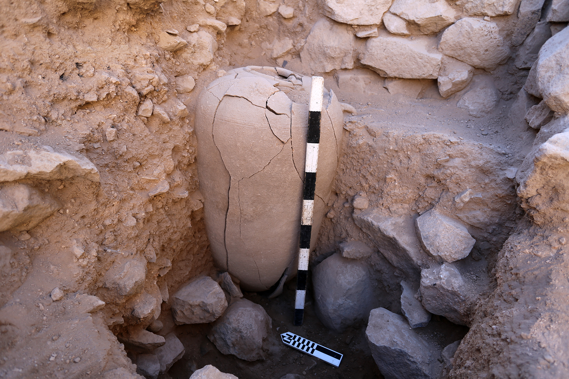 In 2019, the Balu’a Regional Archaeological Project team returned to the field to continue excavations, and this complete Iron Age pithos was found buried under the floor of a late Iron IIC domestic structure in the area. It was brought to ACOR for restoration by conservation technician Naif Zaban. Research and presentation efforts at the site are ongoing. https://publications.acorjordan.org/articles/khirbat-al-balua-2018-2019/