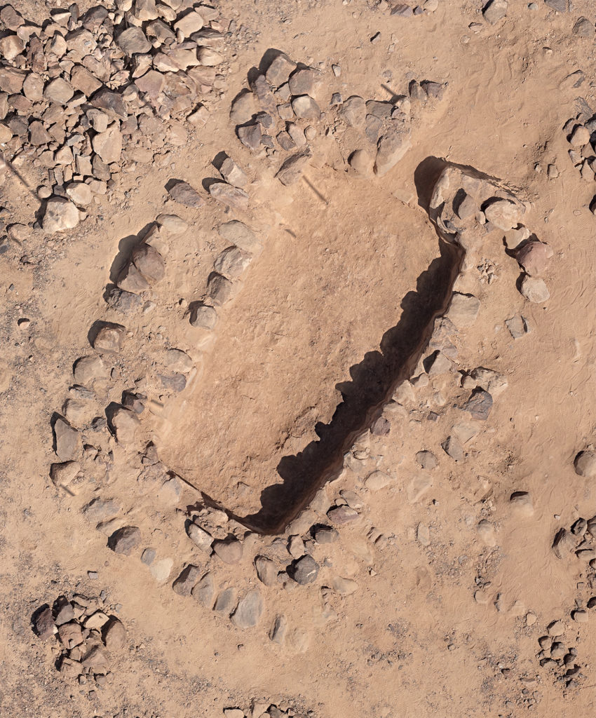 An aerial view of a Bronze Age grave studied by the Barqa Landscape Project in their most recent field season. Excavation revealed that these were stone and mud-brick charnel houses, a style of grave not previously recorded in the Faynan area. Investigation of Bronze Age cemeteries and burials is complicated in this area due to extensive robbing activities over the last thirty years that have left many sites badly disturbed, but this site, Faynan 100, is considered promising. (Photo courtesy of the Barqa Landscape Project.) Find out more here: https://publications.acorjordan.org/articles/barqa-landscape-project-2018-2019/