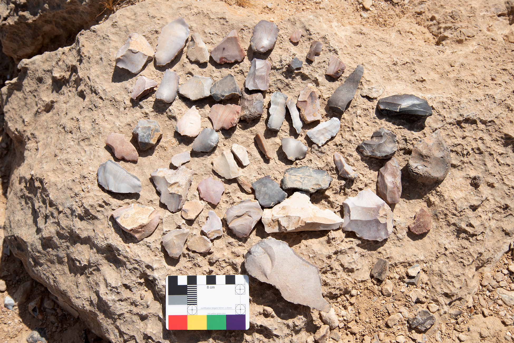 Prehistoric chipped stone, possibly late Neolithic, at site LAS 27 on the Karak Plateau, documented as part of a 2018 survey by the Endangered Archaeology in the Middle East and North Africa project (EAMENA). The Karak Plateau includes rapid transitions between multiple environmental zones (agricultural, steppe, desert), facilitating the study of the impact of climate change on Neolithic settlement. Today, the area is increasingly under threat of mining. While many surveys have been conducted in Karak over the years, Neolithic material has yet to be exhaustively explored. (Photo by EAMENA/ Pascal Flohr. EAMENA-20191008-PF-0155.) Find out more here: https://publications.acorjordan.org/articles/late-neolithic-on-the-karak-plateau-2018-2019/