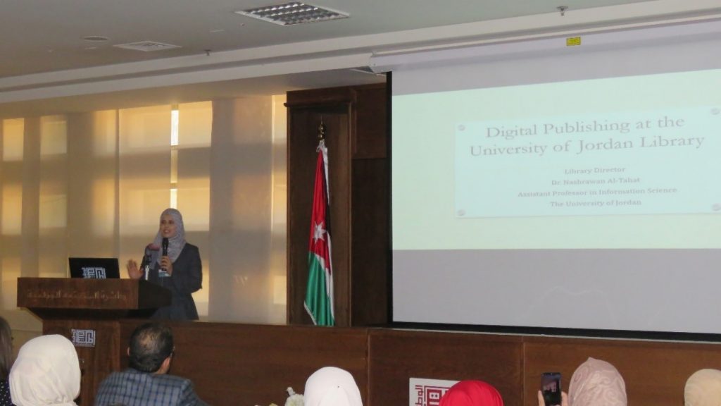 أما مُشاركة الجامعة الأردنية بالورشة اعتبرت نقطة وصل رائعة لربط سِياسة الرّقمنة والتعاون بين الجامعات من خلال الورشة ومن خلال فتح المجال للحوار وطرح الأسئلة من قبل المشاركين من جامعات أردنية اخرى، حيث ألقت الدكتورة نشروان الطاهات مديرة مكتبة الجامعة الاردنية نبذة سريعة عن مكتبة الجامعة ومحتوياتها وأهداف المكتبة الحالية والمستقبلية في رقْمنة الكتب والرسائل الجامعية وتعاون المكتبة مع الجامعات الأردنيّة