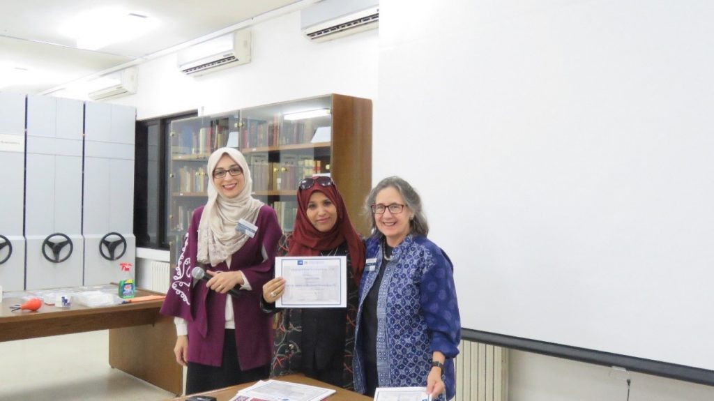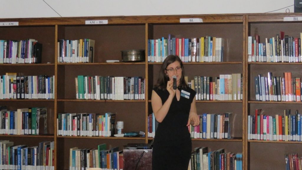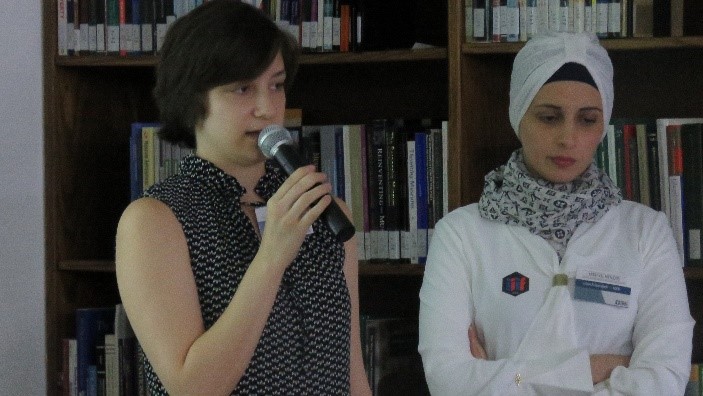 (من اليمين: اسلام داوودية، ريتشل ماجلينسكي خلال تقديم ورقة عن مجموعة نانسي لاب (تصور آشلي لامب