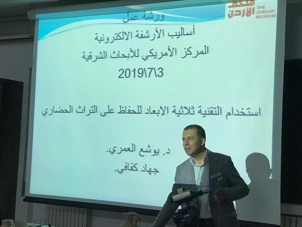كان التّدريب العملي هو الشيء الجديد المُضاف لورشة العمل 2019 من خِلال التّدريب على استخدام جهاز المسح ثلاثي الأبعاد بإشراف كل من الدكتور يوشع العمري و جهاد كفافي من مُتحف الاردن، قدم جهاد كفافي نبذه عن استخدام تقنية ثلاثية الأبعاد للحفاظ على التراث الحضاري. الدكتور يوشع العمري قدم التدريب العملي على الجهاز للمشاركين وقدم شرح عن كيفية استخدامه مما ترك أثر رائع على المشاركين بتفاعلهم الجميل