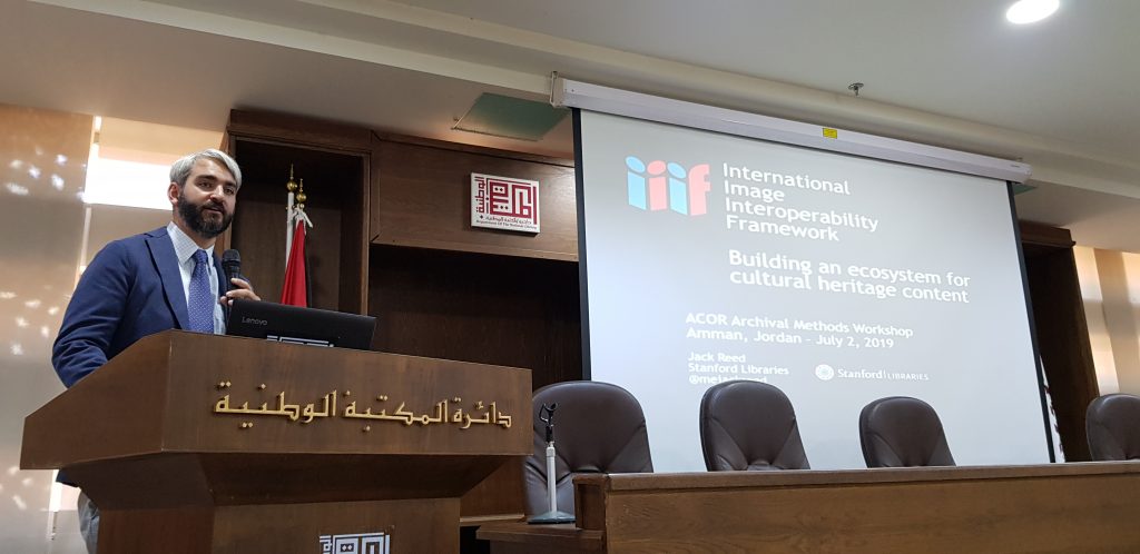Events kicked off at the National Library of Jordan, where Jack Reed of Stanford University Libraries gave the keynote lecture on International Image Interoperability Format (IIIF – pronounced “triple eye-eff”). Candid participants (and ACOR staff) admitted to a feeling of trepidation at being faced with an intimidating topic potentially filled with technical jargon. In some ways, they were right – Jack’s talk floored us. But not how you might expect – Jack’s clear and engaging talk gave examples of the ways IIIF (a combination of APIs and software) can remove barriers to image-, audio- and video- viewing and sharing through seamless searching across multiple repositories. Jack revealed that the earliest adopters of IIIF technology were medieval manuscript specialists. Surprised? So were we. In fact, IIIF allows institutions which hold manuscript pages that were cut up (unfortunately, a common practice of dealers looking to sell illustrations separately) to offer readers the chance to view pages as a whole for the first time since they were fragmented.