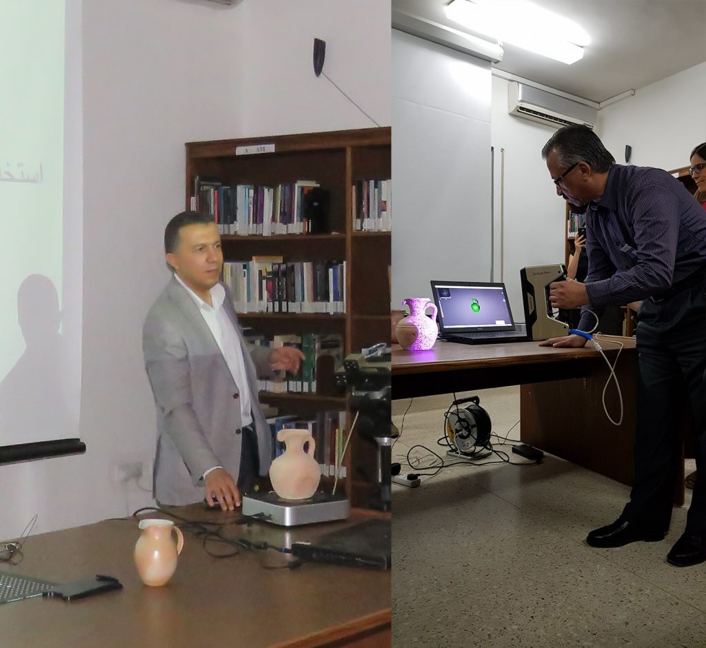 Participants of last year’s workshop told us that they wanted to see more document- and object-specific sessions at the Archival Methods workshop, so we turned to the experts around us. Nawal Al-Aqeel of the National Library of Jordan gave some participants their first opportunity to see the inner workings of the library through a behind-the-scenes tour of their exhibition and digitization spaces. On day two, Jihad Kafafi and Yosha Al-Amri from the Jordan Museum stole the show, transforming the ACOR Lower Library into a 3D scanning workshop. Jessica Holland rounded off the technical skills-exchange part of the workshop with a guide to the best practice for calibration, and digitization of the main types of modern photographic media that we use on the ACOR Photo Archive project. Access to ACOR’s guides to digitization are available here.