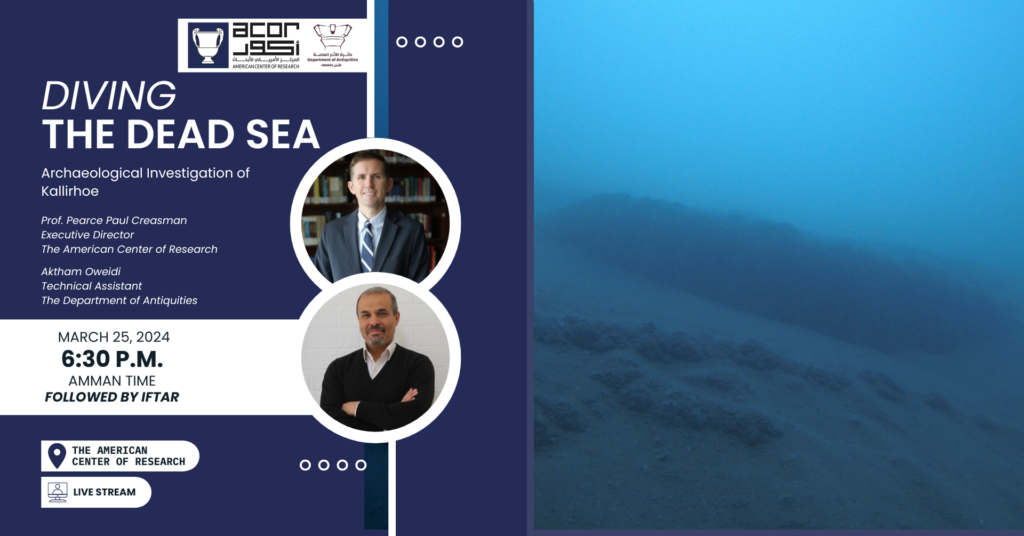 Creasman, Pearce Paul, Aktham Oweidi, Jehad Haron, Justin Schneider, Frederick Fidler, and Randall Parker. 2024. “Excavating the Dead Sea Harbor at Kallirhoe/‘Ain ez-Zara.” ACOR Newsletter 35.2: 1–4. (Download.)