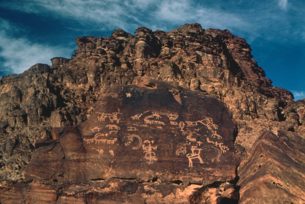 Rock art in Wadi Rum. 1975–1981. (James A. Sauer Collection, ACOR Digital Archive.)