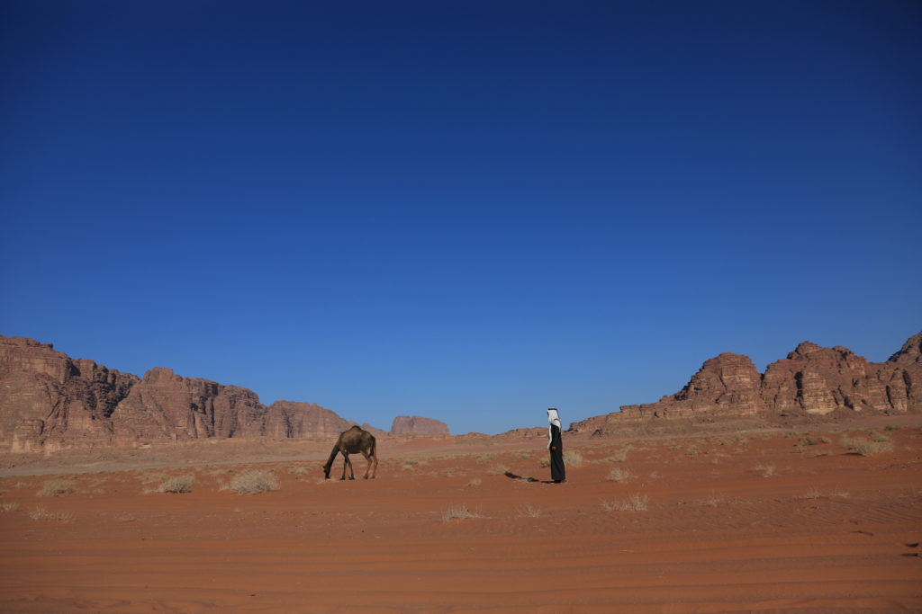 Bedouin man and camel in Wadi Rum, Jordan. 2017. (USAID SCHEP Collection, ACOR Digital Archive.)