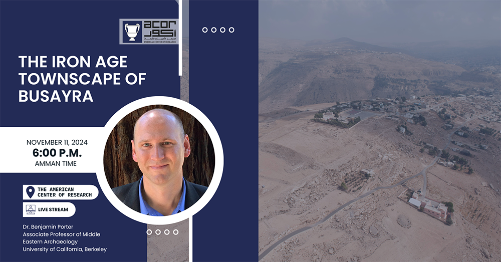 This talk draws together past and recent research on the Iron Age townscape of Busayra, widely believed to be the administrative capital of the kingdom of Edom. Excavations during the 1970s revealed a suite of monumental public architecture and residential neighborhoods on the settlement’s summit. Recent research carried out by the speaker and his colleagues have returned to these partially documented buildings to better understand their role in the settlement and in the broader region. Geophysical research in unexcavated areas have determined that these were part of a larger townscape awaiting further study. This talk will describe these new discoveries as well as discuss opportunities to continue site development and community engagement activities in the future.