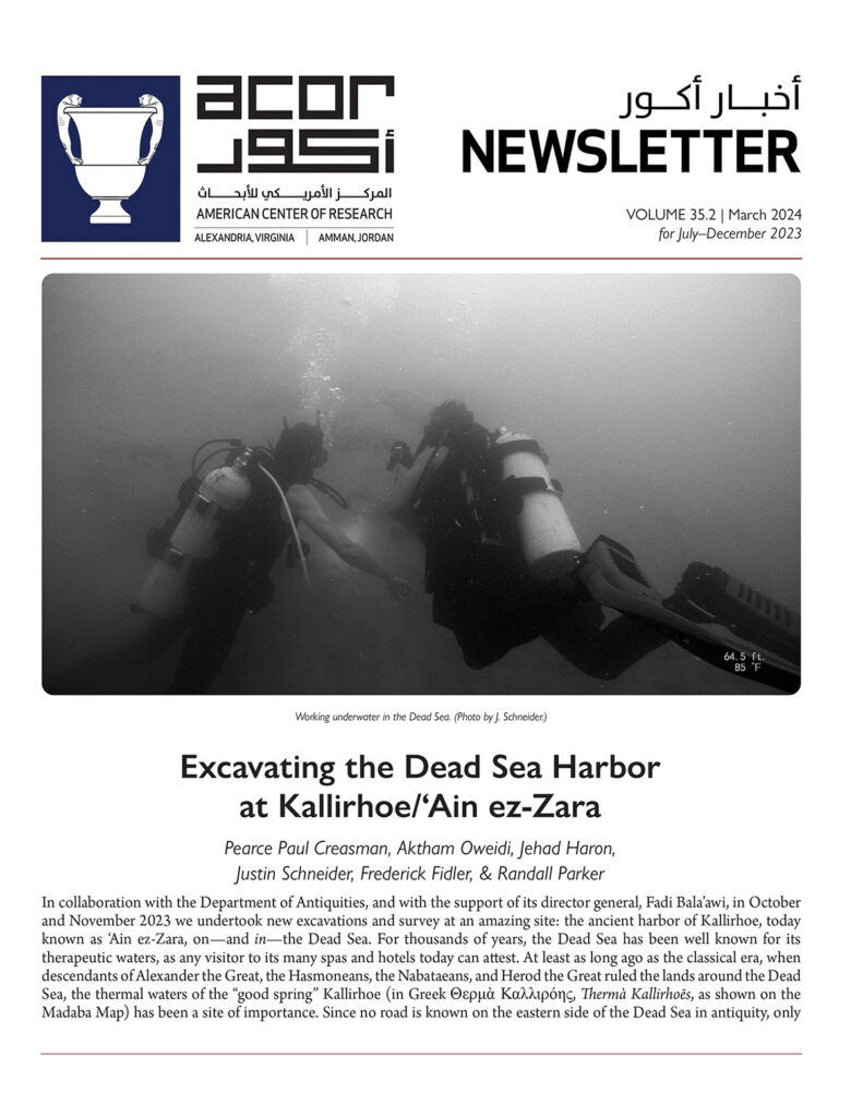 - The first-ever underwater archaeological exploration of the Dead Sea by a team of divers—at the ancient port site of Kallirhoe, the harbor that served the fortress on Mount Machaerus.