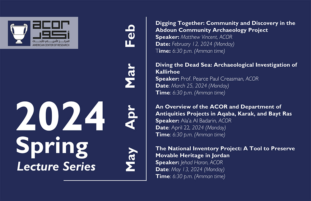 Please note that our lectures will be held at our offices in Amman (https://goo.gl/maps/TVmFAXKhov9ZbiPDA) and we are also making them accessible to a wider audience through a LIVE STREAM on YouTube (https://www.youtube.com/@ACORJordan1968)!