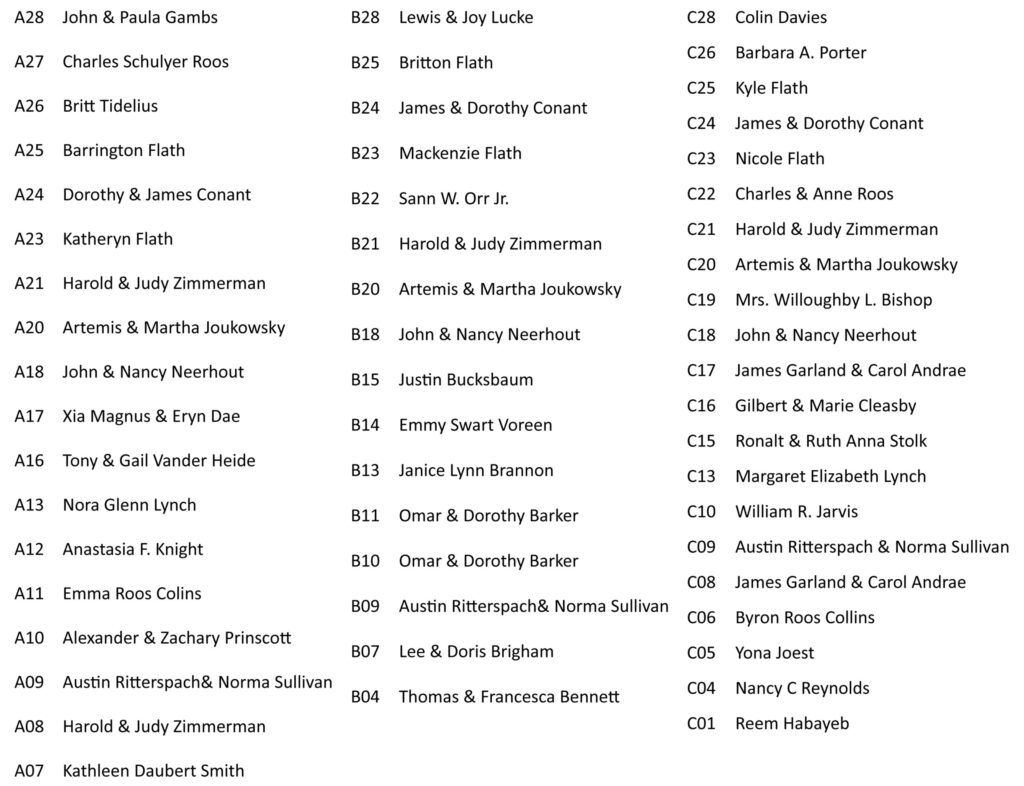 Sections of mosaics in the Petra Church have been “adopted” by private donors who generously contributed support for the Petra Church Conservation Endowment. To find out about the people who donated to this campaign, often in honor of loved ones, please see below.