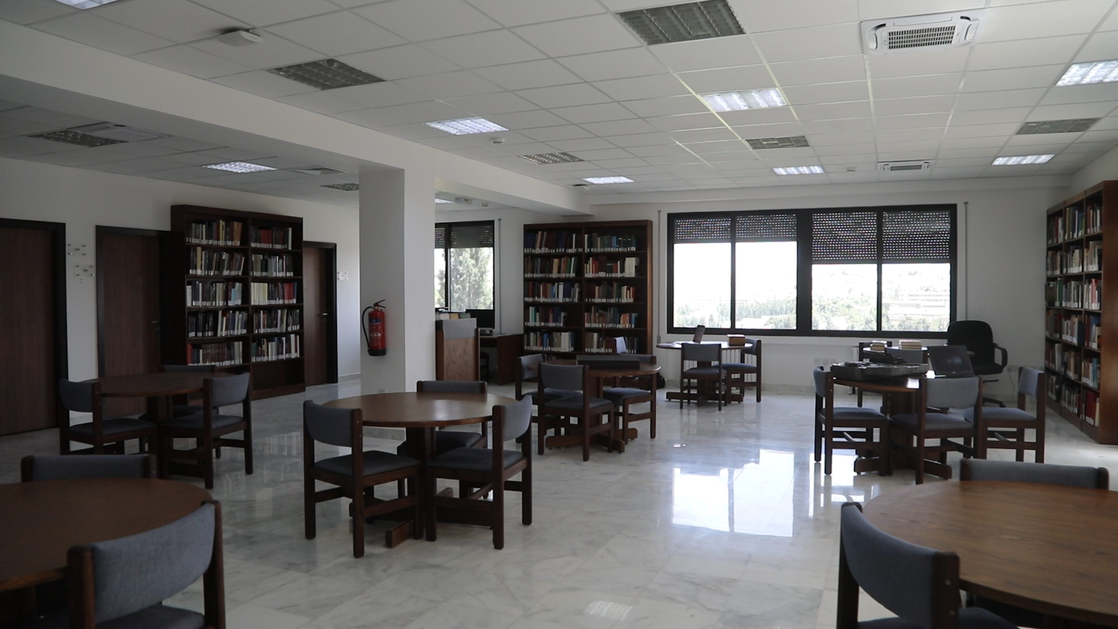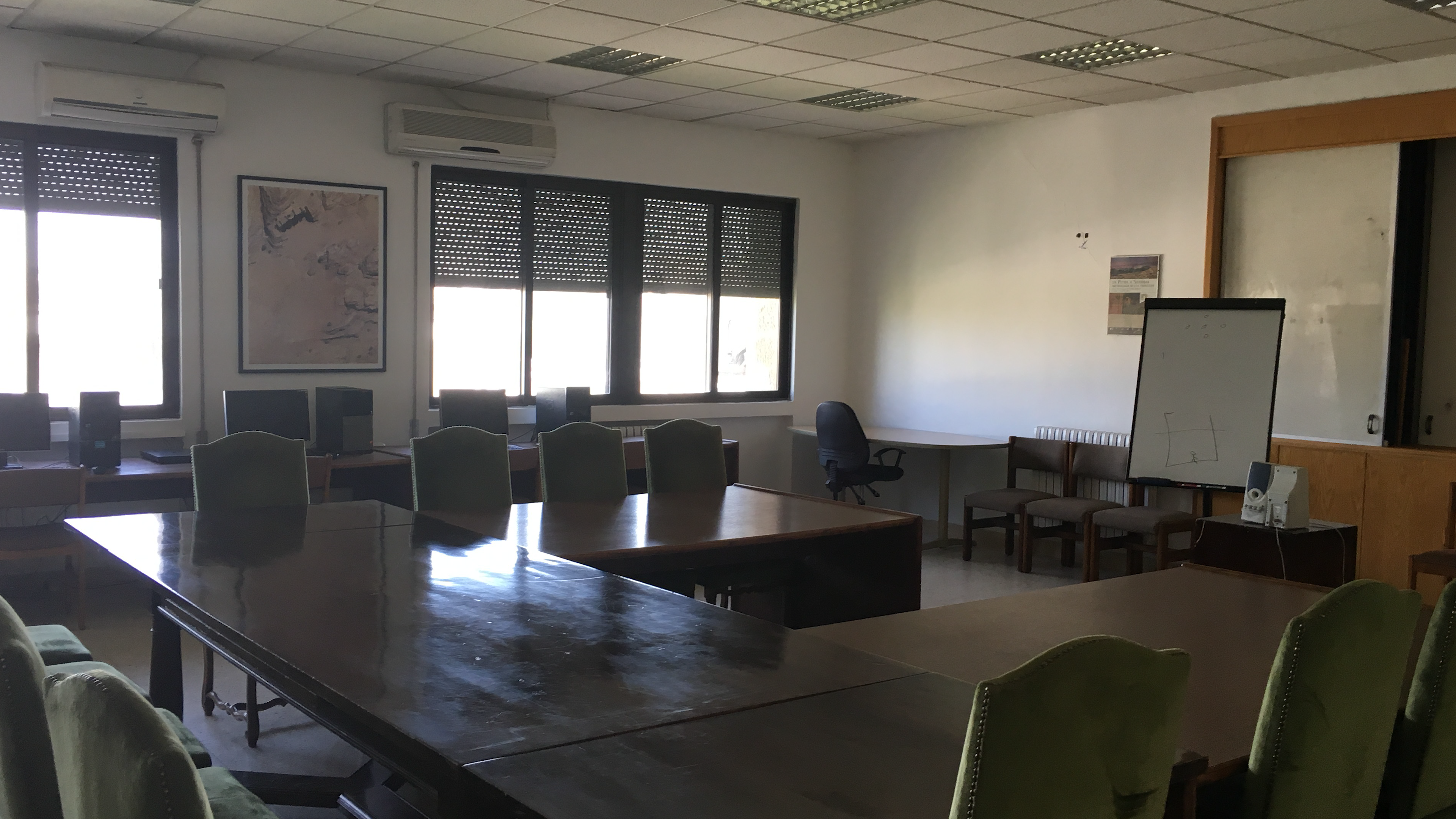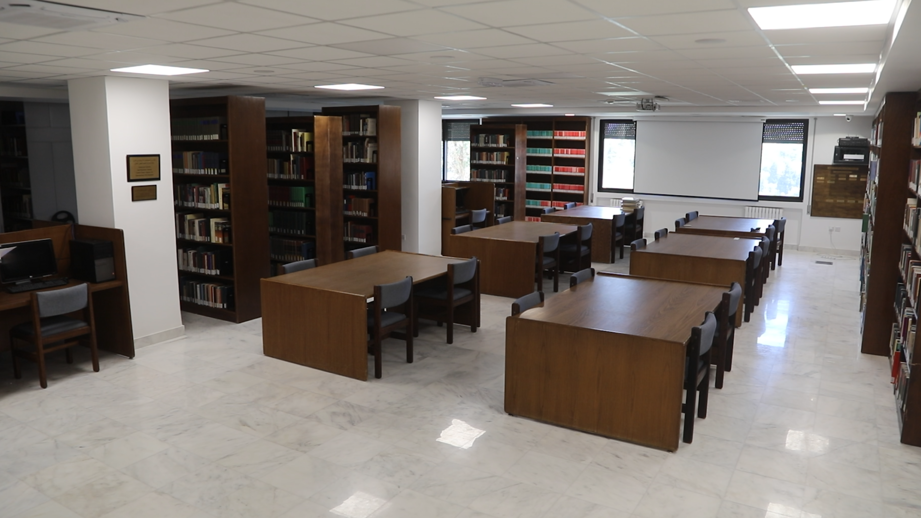 The seminar room now serves as a multi-purpose space used for multiple educational/exchange purposes. Seminar room now includes capacity for meeting, video conferencing, as well as the ability to divide the space into two smaller spaces that can function separately.