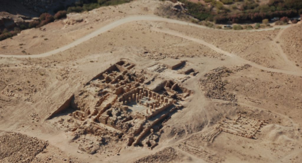 The temple’s spiritual focus was likely a statue or a standing stone, set on the podium, around which priests and devotees would circle. The walls and columns of the temple’s inner sanctum were brightly decorated with floral and figurative designs, while recesses and niches surrounding the podium held offerings and idols. Thought to have been built by the Nabataeans in the early 1st century A.D., the temple continued to thrive after the Roman annexation of A.D. 106 and fell out of use following the earthquake of A.D. 363.