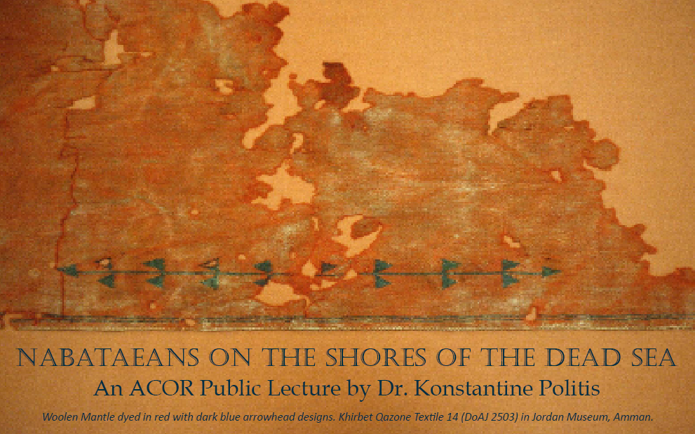 ACOR Proudly Presents: “Nabataeans on the Shores of the Dead Sea” An ACOR Public Lecture by Dr. Konstantinos D. Politis on March 10, 2020 About the Lecture: Ancient sites that have recently come to light on the Dead Sea littoral reveal what life was like for the average Nabataean some two thousand years ago. Ancient […]